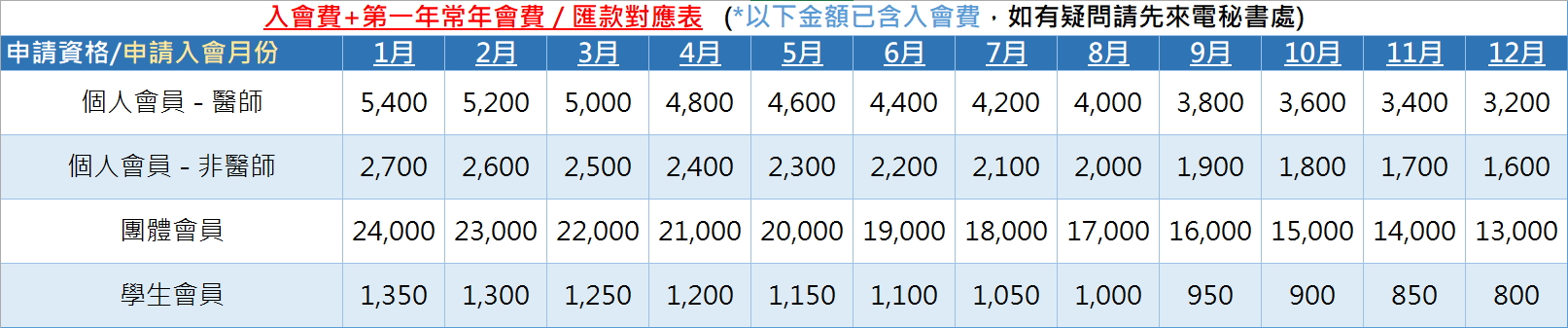 *範例:非醫師於5月申請入會=2,300元